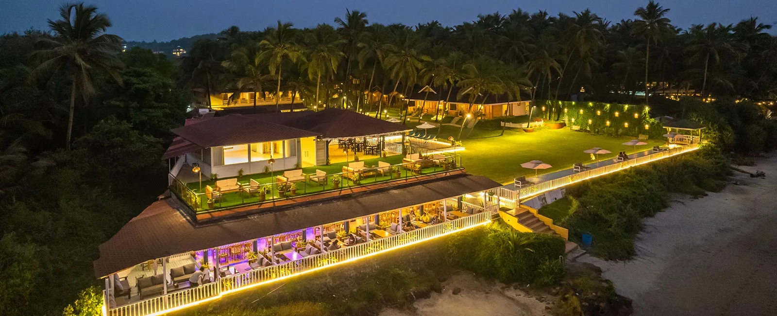 La Cabana Beach Resort is known for its calm and relaxed vibe. Located right on Ashwem Beach, the venue offers direct beach access and beautiful sea views, making it a popular choice for beach weddings.